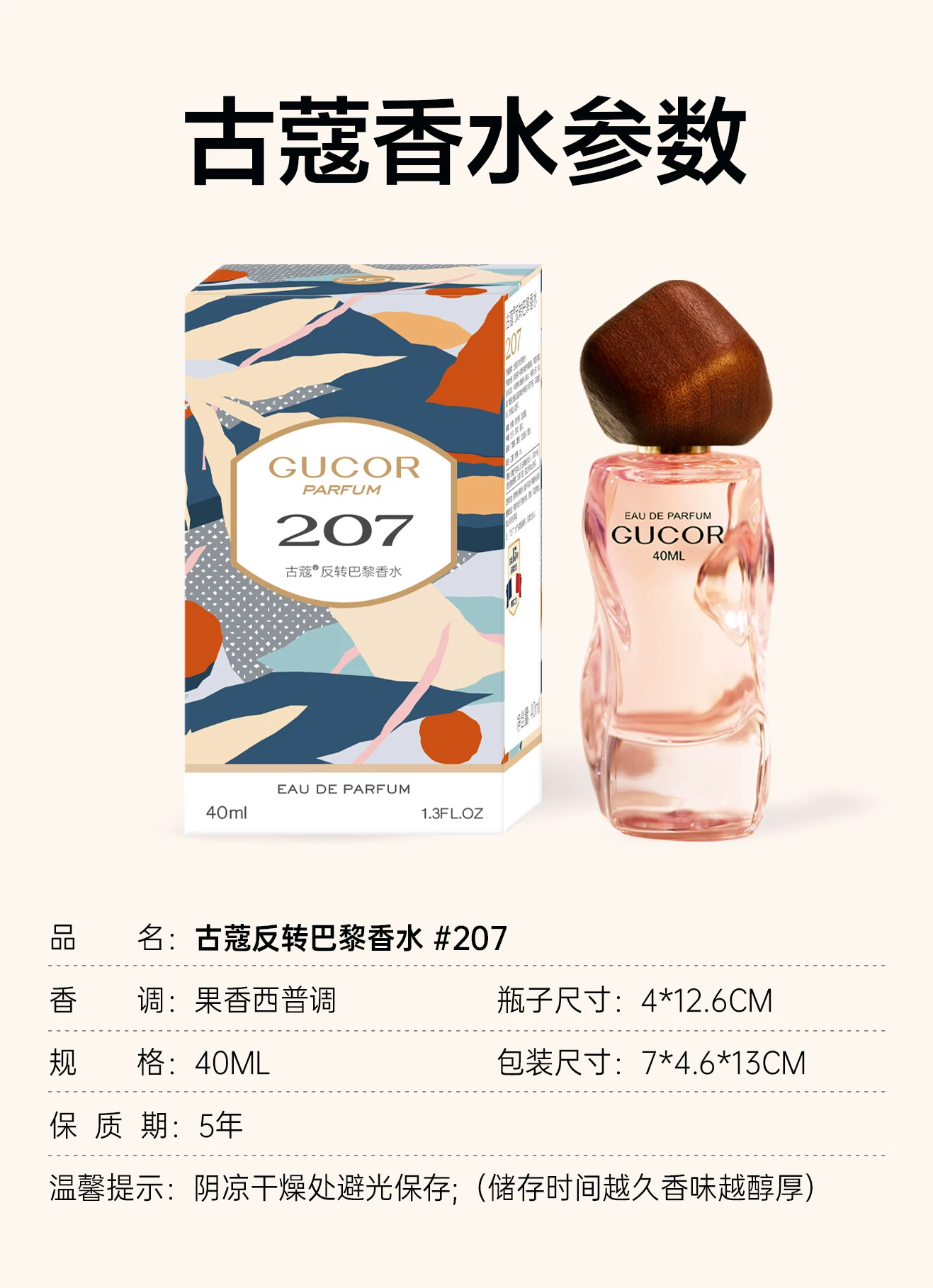 古蔻207反轉巴黎女士香水持久留香約會香淡香果香西普調官方正品