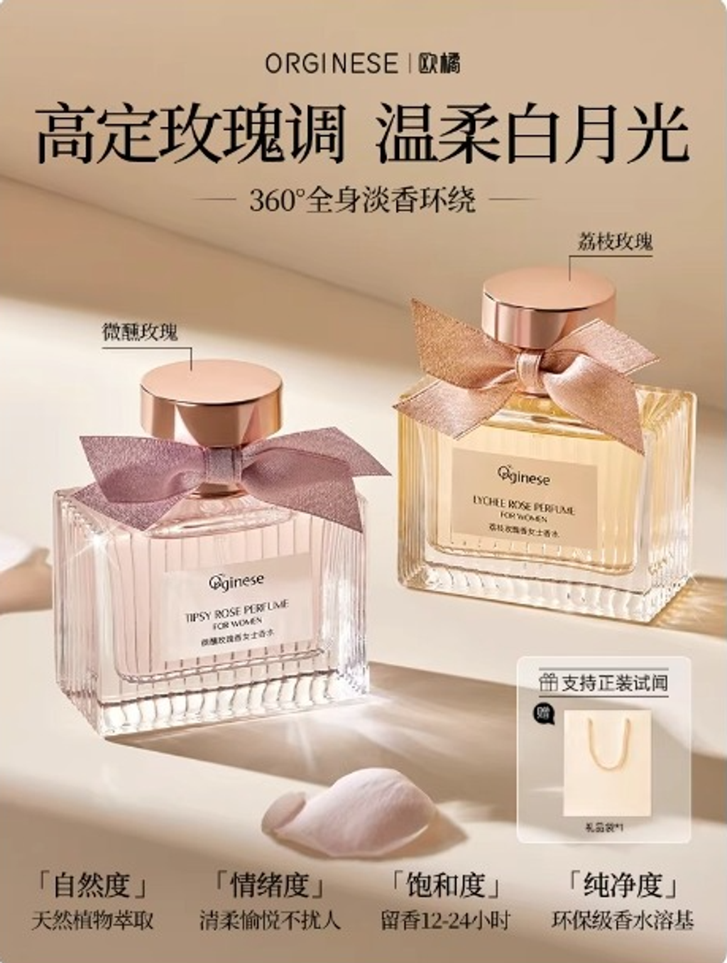 - 花香调 荔枝玫瑰香50ml+微醺玫瑰香50ml+礼品袋*2