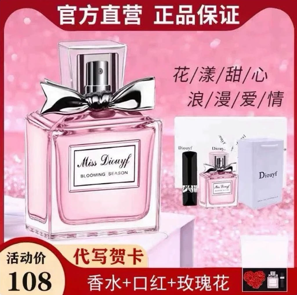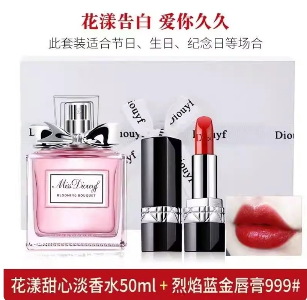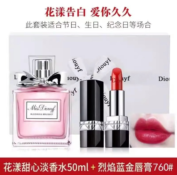 香水迪奧詩丹正品花漾甜心小姐淡香女士持久留香50ml禮盒口紅999