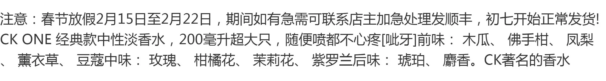 - 柑橘调 ck one 白瓶中性淡香水200ml